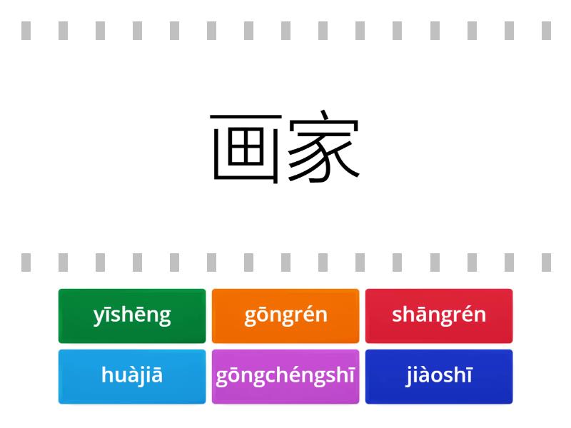 huàjiā - 画家, shāngrén - 商人, gōngrén - 工人, yīshēng - 医生, gōngchéngshī - 工程师, jiàoshī - 教师,
