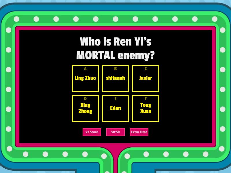 1) Who is Ren Yi's MORTAL enemy? a) Ling Zhuo b) shifanah c) Javier d) Xing Zhong e) Eden f) Tong Xuan 2) What does Ren Yi do every recess? a) play recess play b) go library c) eat d) toilet? e) buy stuff from bookshop f) buy drinks to drink 3) When is Ren Yi's birthday? a) 14 Feb b) 15 Feb c) 16 Feb d) 17 Feb e) 18 Feb f) 19 Feb 4) What is Ren Yi's Signature Nickname? a) Durian head b) ufo renyi c) potato d) red butt monkey e) 一个人 f) 一人 5) What is Ren yi's hobby? a) reading b) studying c) sleeping d) drawing e) packing f) exercising