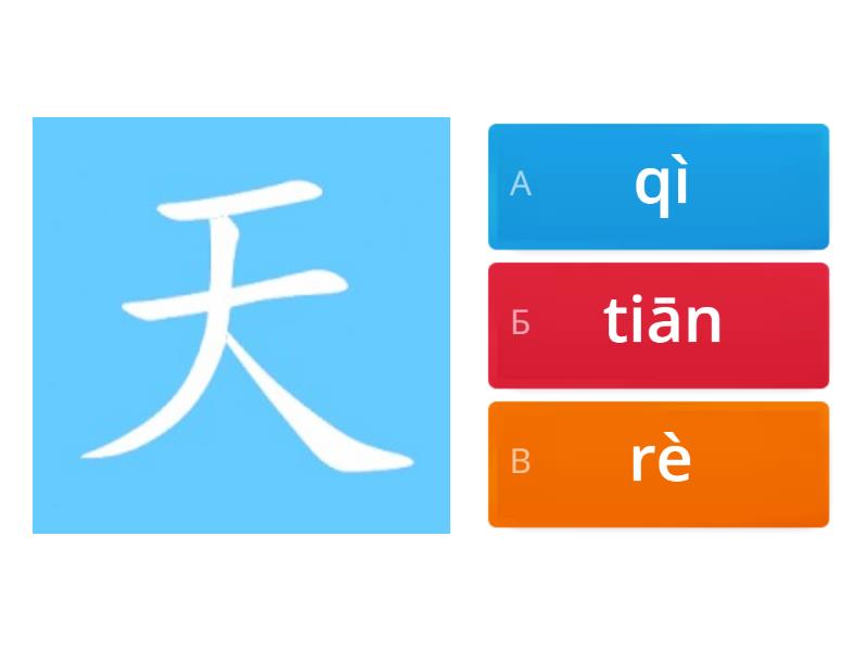 1) 怎么样 a) почему? b) как? какой? c) когда? 2) погода a) 天天 b) 今天 c) 天气 3) холодно, холодный a) 热 b) 冷 c) 好 4) жарко, горячий a) 冷 b) 下 c) 热 5) Идет дождь a) 下雨 b) 下雪 c) 下课 6) 天气 a) tiānqì b) xiàyǔ c) zěnme
