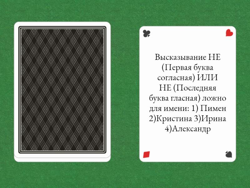 Что такое конъюнкция?, Высказывание НЕ (Первая буква согласная) ИЛИ НЕ (Последняя буква гласная) ложно для имени: 1) Пимен 2)Кристина 3)Ирина 4)Александр, Что такое высказывание?.