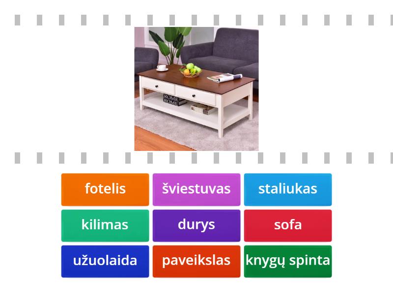 staliukas, sofa, fotelis, knygų spinta, šviestuvas, užuolaida, kilimas, paveikslas, durys,