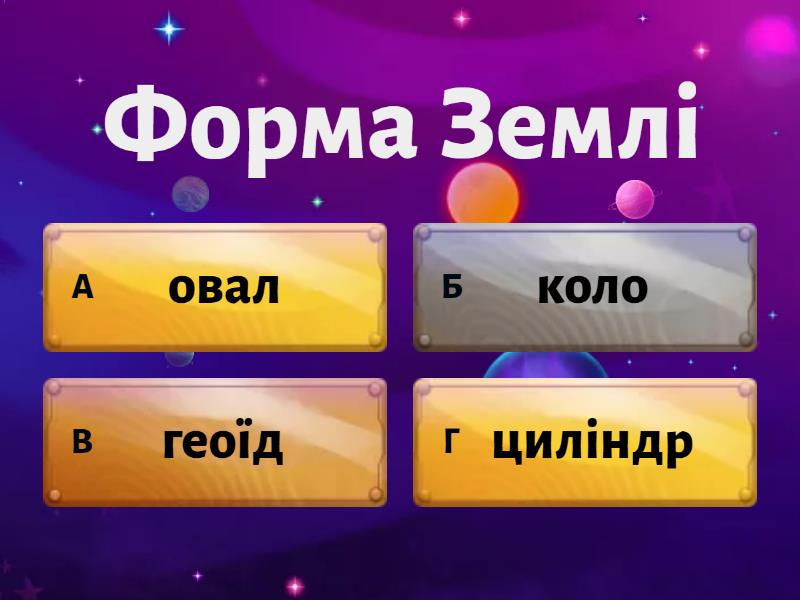 1) Форма Землі a) овал b) коло c) геоїд d) циліндр 2) Кто открыл Америку? a) Колумб b) Магеллан c) Марко Поло d) Дж. Кук 3) Что изучает география! a) живые организмы b) природу, население, хозяйство c) Вселенную d) Законы природы 4) Спутник Земли a) Юпитер b) Луна c) Марс d) Солнце 5) Прибор для определения сторон горизонта a) нивелир b) гномон c) компас d) транспортир 6) Северное полушарие a) Европа b) Антанрктида c) Австралия d) о. Новая Зеландия 7) Южное полушарие a) о.Мадагаскар b) о.Гренландия c) Канада d) Крым 8) Самый глубокий океан a) Анлантический b) Индийский c) Тихий d) Северный Ледовитый