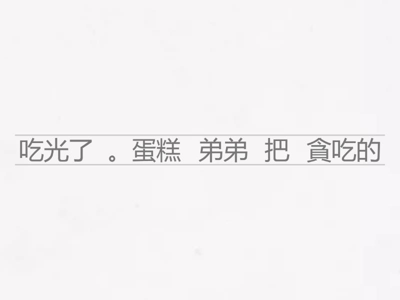 貪吃的 弟弟 把 蛋糕 吃光了 。, 蛋糕 被 貪吃的 弟弟 吃光了 。, 警察 把 狡猾的 小偷 抓住了 。, 狡猾的 小偷 被 警察 抓住了 。, 狂風 把 樹上的 樹葉 吹落了 。, 樹上的 樹葉 被 狂風 吹落了 。,