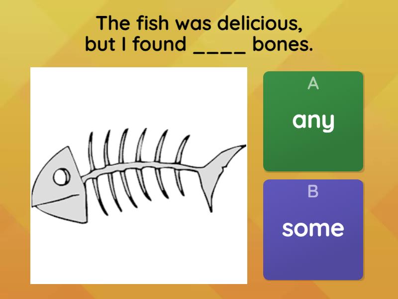 1) The fish was delicious, but I found ____ bones. a) any b) some 2) A healthy diet consists of _____ vegetables and fruit. a) much b) a lot of 3) How ______ time do you spend doing exercise? a) much b) many 4) We have _________ milk to drink. a) some b) many 5) How ______ hours do you spend cooking? a) much b) many 6) There are ___________ oranges in the fridge. a) a lot of b) much 7) There aren't _____ apples in the fridge. a) many b) some 8) I don't eat _______ chocolate. a) much b) many 9) I spend _____ time on the computer. a) quite a lot b) many