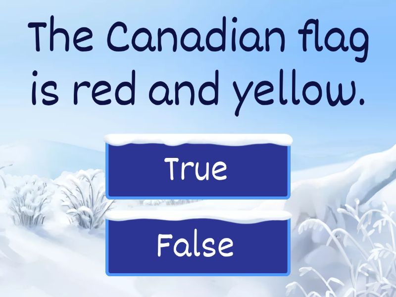 1) The Canadian flag is red and yellow. a) True b) False 2) Vancouver is a city in Canada. a) True b) False 3) Fifty percent of Canada is in the Arctic. a) True b) False 4) People sometimes build igloos in the Arctic. a) True b) False 5) Winter in the Arctic can last from October to March. a) True b) False 6) In the summer, there are days when it doesn’t get light. a) True b) False