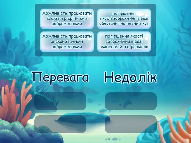 Перевага: можливість працювати зі сканованими зображеннями, можливість працювати із фотографічними зображеннями, Недолік: погіршення якості зображення в разі змінення його розмірів , погіршення якості зображення в разі обертання на певний кут,