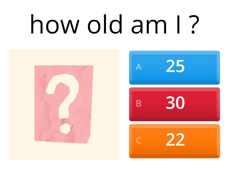 1) how old am I ? a) 25 b) 30 c) 22 2) What is my favorite animal? a) a cat 🐱  b) a dog 🐶 c) a lion 🦁 3) What is my favourite color?  a) black 🖤 b) orange 🧡 c) green 💚 4) What is my favourite fruit? a) banana 🍌 b) apple 🍎 c) pineapple 🍍  5) who is my favourite foreign singer? a) Rihanna b) Adele c) Beyonce