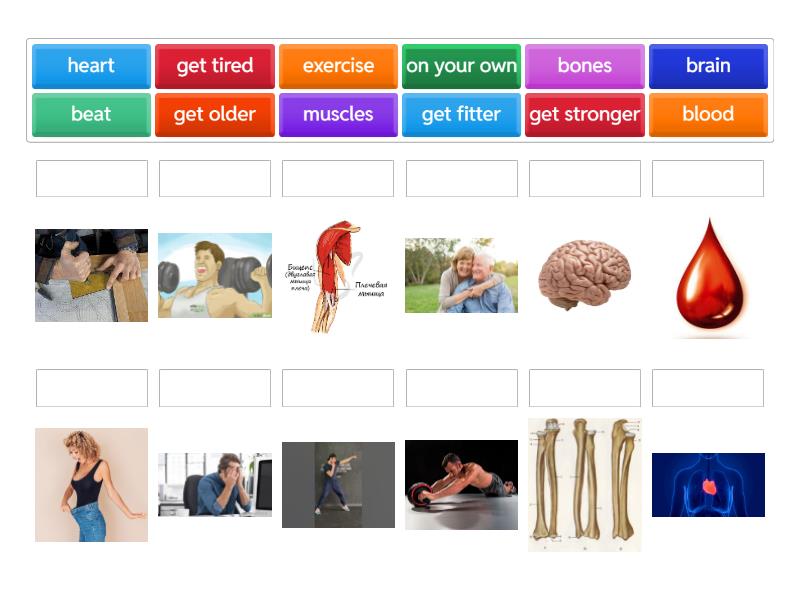 blood, bones, brain, heart, muscles, exercise, beat, get fitter, get tired, get stronger, get older, on your own,