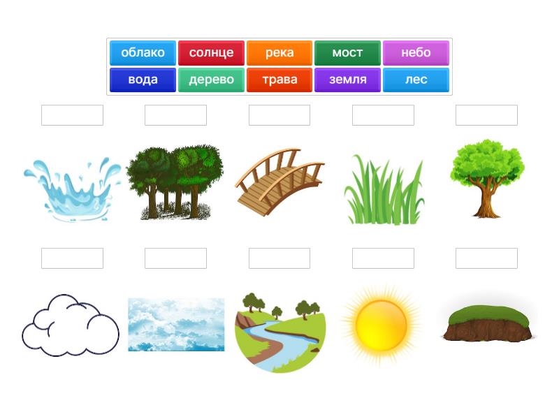 солнце, небо, земля, река, вода, дерево, лес, облако, мост, трава,
