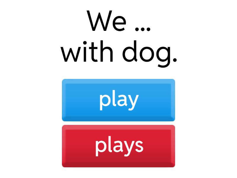 1) We ... with dog. a) play b) plays 2) I ... cats. a) draws b) draw 3) I ... to play with my dog. a) doesn't like b) don't like 4) My uncle ... in an office. a) works b) work 5) My brother ... dogs. a) don't draw b) doesn't draw 6) The cats ... with my toy.  a) don't play b) doesn't play 7) .... they like to ride a bike? a) does b) do 8) .... Mr Brown work in the hospital? a) does b) do 9) ... my brothers play with my friend? a) does b) do 10) It ... to run. a) like b) likes 11) Kate ... planes. a) don't draw b) doesn't draw 12) The children ... at the Zoo. a) works b) work
