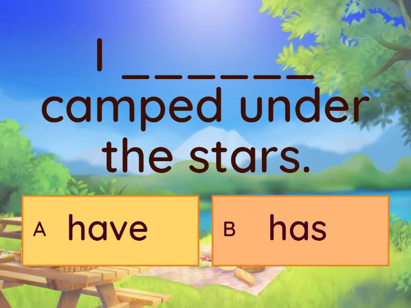 1) I ______ camped under the stars. a) have b) has 2) They ______ explored a cave on their last trip. a) have b) has 3) She ______ climbed a tree before. a) has b) have 4) He ______ never kayaked down a river. a) has b) have 5) We ______ looked for fossils in the mountains. a) have b) has 6) Tom ______ picked wild fruit many times. a) has b) have 7) You ______ played in the snow, right? a) has b) have 8) My brother ______ recorded birdsong in the forest. a) has b) have 9) The children ______ tracked wild animals during their hike. a) have b) has 10) Emily ______ always wanted to camp under the stars. a) has b) have 11) I ______ never seen a fossil in real life. a) have b) has 12) They ______ kayaked on that river twice. a) have b) has 13) Lucas ______ tried to climb a very tall tree. a) has b) have 14) We ______ found wild berries while hiking. a) have b) has 15) My parents ______ told me stories about their adventures in the wild. a) have b) has 16) I ______ heard that exploring caves can be dangerous. a) have b) has