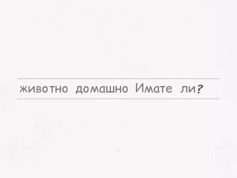 Имате ли домашно животно?, Какви са предимствата да имате домашно животно?, Какви са недостатъците да имате домашно животно?, Kакви ваканции предпочитате?, Обичате ли да пътувате?,