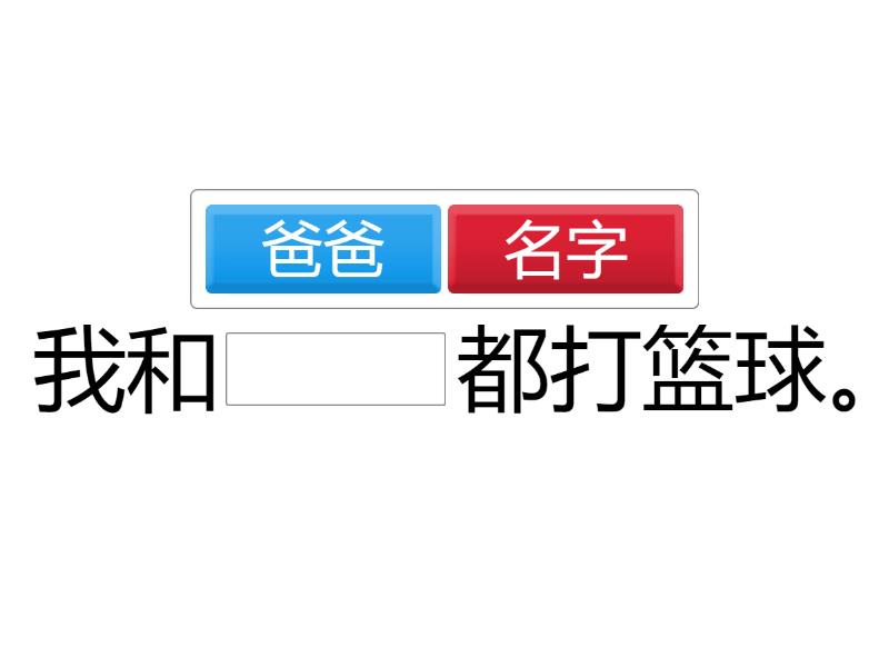 我和____都打篮球。 你的____朋友学什么? 我们____是学生。 他的妈妈是____老师吗? 中____学法语。 我的爸爸不是中学的____。 马丽、____是你们的教练? 马明不学汉语,他学____语。 你们____教练好吗? 她和妈妈____打羽毛球。