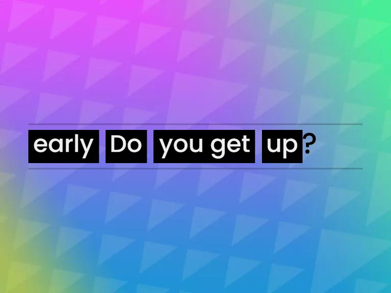 Do you get up early?, Where do you study?, Does your mother like reading?, What do you have for lunch?, Do you like playing video games?, Who do you live with?, What do you do in the afternoon?, Where does your father watch TV?,