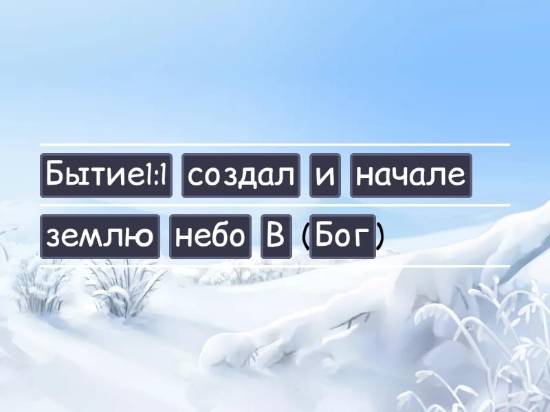 В начале Бог создал небо и землю (Бытие1:1), Переложите на него все свои беспокоиства, потому что он заботится о вас (1Петра5:7), Праведные унаследуют землю и будут жить на ней вечно (Псалом37:29), Счастливы милосердные, потому что к ним будет проявлено милосердие (Матфея5:7), Каждый, кто призывает имя Иеговы будет спасен (Римлянам10:13), Бог распростер северное небо над пустотой, подвесил землю ни на чем (Иов26:7), Мужья, любите своих жён и не обращайтесь с ними грубо. (Колоссянам3:19), Я Альфа и Омега, первый и последний, начало и конец (Откровение22:13), Как тело без духа мертво, так и вера без дел мертва (Иакова2:26), Вот суть всего сказанного: бойся истинного Бога и соблюдай его заповеди (Экклеизаст12:13),