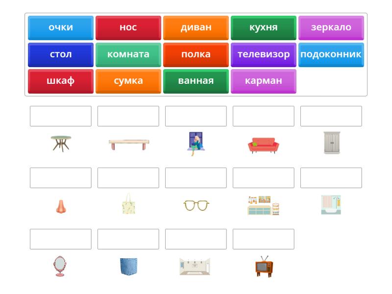 полка, телевизор, шкаф, нос, кухня, зеркало, ванная, диван, карман, стол, очки, подоконник, сумка,  комната,
