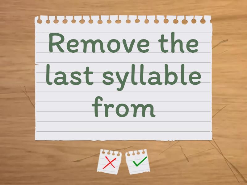 Remove the first syllable from, Remove the middle syllable from , Remove the last syllable from, Remove the first syllable from , Remove the middle syllable from , Remove the last syllable from ,