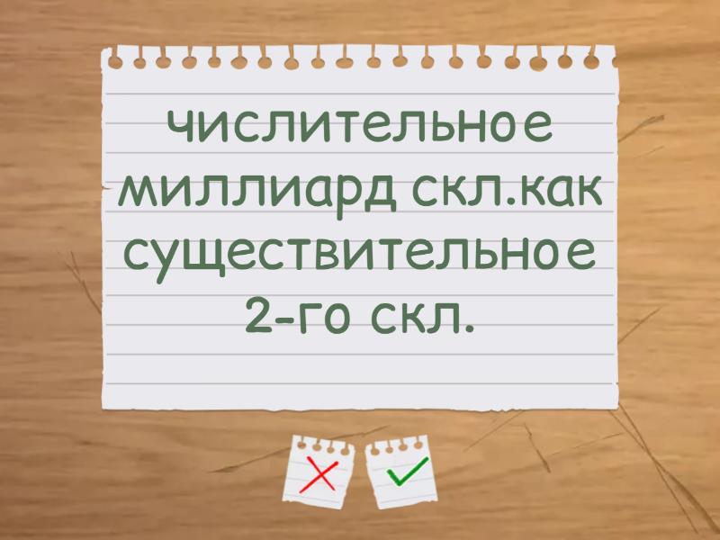 В составных числ. склоняется все части - правильно , в числ. пятьдесят три формы склонения. - неправильно , При склонение составных поряд.числ. изменяются все слова - правильно , порядковые числительные склоняются как существительное - неправильно , числительное миллион скл.как сущ. 3- го лица - неправильно , числительное миллиард скл.как существительное 2-го скл. - правильно ,