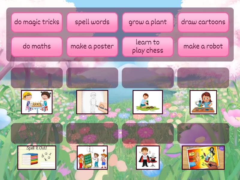 grow a plant, make a robot, do maths, spell words, do magic tricks, draw cartoons, make a poster, learn to play chess,