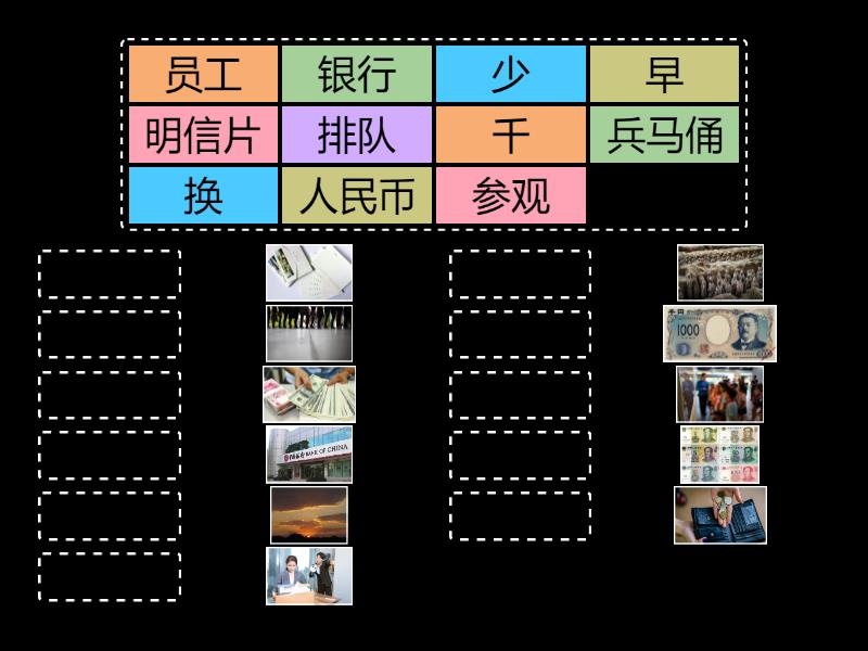 参观, 员工, 千, 明信片, 兵马俑, 早, 银行, 少, 排队, 换, 人民币,
