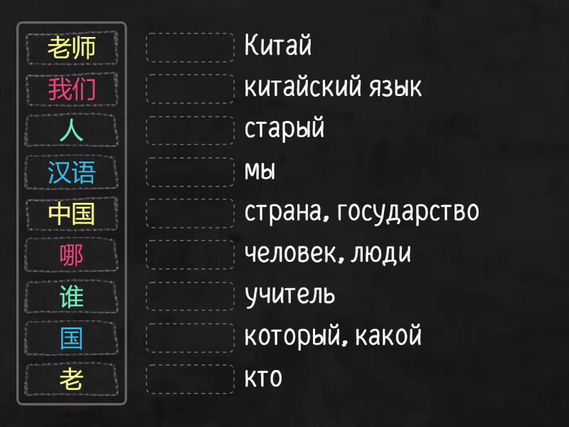 哪 - который, какой, 国 - страна, государство, 人 - человек, люди, 谁 - кто, 我们 - мы, 老师 - учитель, 老 - старый, 汉语 - китайский язык, 中国 - Китай,