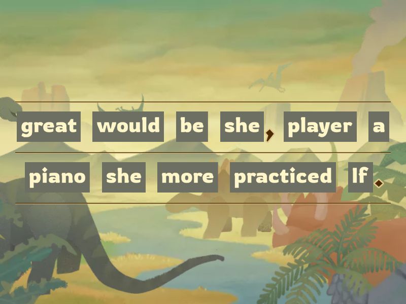 If she practiced more, she would be a great piano player., If we moved to another country, we would have a better life., If you took the train, you would get here more quickly., If he didn't go to bed so late, he would have more energy., If the TV programme had another presenter, it would be more popular., If I missed my flight, I would be very sad., If I didn't love meat, I would become a vegetarian., If you weren't so stubborn, you would learn more.,