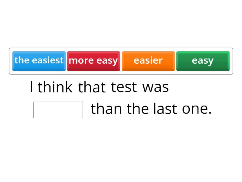 I think that test was ____ than the last one. The stadium was ____ / ____ than I thought. It took two hours to get there! We won the dance competition. We were ____ than the others . My dad really enjoyed the concert last night. He was ____ than me! We cycled a long way today. I felt ____ than the last time.