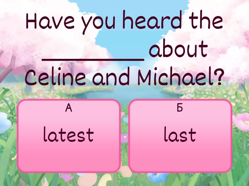 1) Have you heard the ________ about Celine and Michael? a) latest b) last 2) What is the _________ present you've ever received? a) worse b) worst 3) Of the two brothers Harvey is the _______. a) elder b) older 4) Every day she sinks ________ and ________ into depression. a) further b) farther 5) For ________ information, please ring 095-6710090. a) further b) farther 6) He could see a small boat on the ________ shore. a) further b) farther 7) Police questioned him and he was ________ arrested. a) later b) latter c) last 8) She offered me more money or a car and I chose the ________. a) later b) latter c) last 9) Our house is the ________ one on the left before the traffic lights. a) latter b) last c) latest 10) I eat ________ chocolate and fewer biscuits than I used to. a) less b) least c) more little d) fewer 11) This group is the ________ likely of the four to win. a) less b) least c) more d) much 12) Try a ________ pan than this one. a) shallower b) more shallow 13) This girl is much __________ . a) tenderer b) more tender 14) This task is the __________ . a) most simple b) simplest 15) He is the _________ of all of them. a) maturest b) most mature 16) They started to drive _________ because of the rain. a) more slowly b) slowlier c) most slowly d) slowliest 17) They were afraid to miss their flight, so they started to drive ________ . a) faster b) more fast c) fastest d) most fast