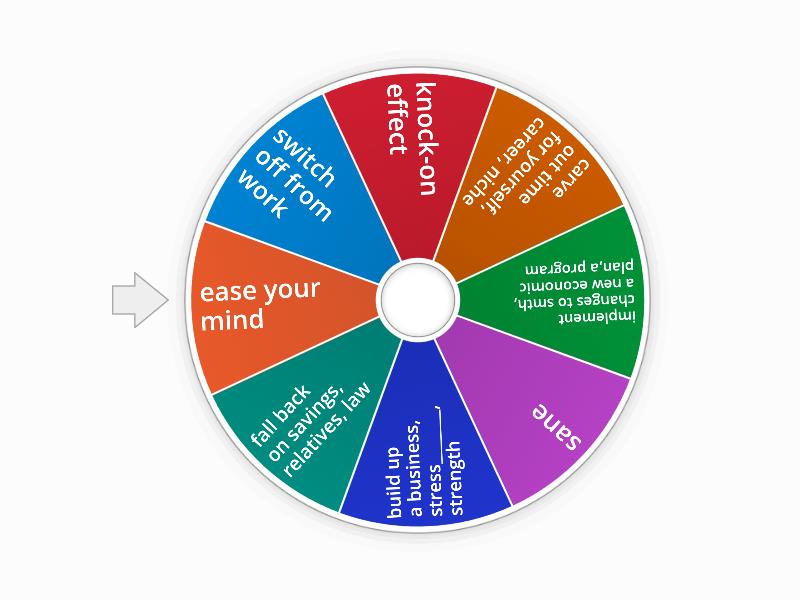 1) switch off from work 2) knock-on effect 3) carve out time for yourself, career, niche 4) implement changes to smth, a new economic plan,a program 5) sane 6) build up  a business, stress_______, strength 7) fall back on savings, relatives, law 8) ease your mind