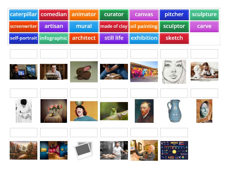 artisan , sculptor, pitcher, still life, oil painting, sculpture, self-portrait, exhibition, mural, architect, sketch, carve, caterpillar, infographic, made of clay, canvas, curator, comedian, animator, screenwriter,