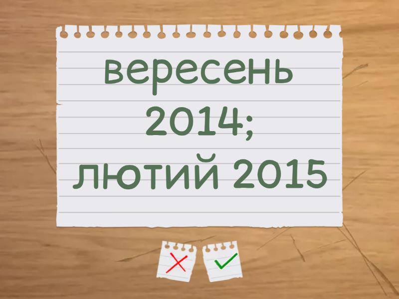 січень 2019 - Томос про автокефалію Української церкви, вересень 2014; лютий 2015 - Мінські домовленості,