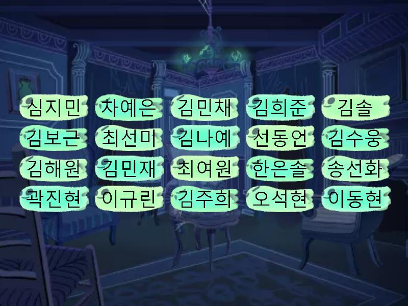 곽진현, 김나예, 김민재, 김민채, 김보근, 김솔, 김주희, 김해원, 김희준, 한은솔, 선동언, 송선화, 심지민, 오석현, 이규린, 이동현, 차예은, 최선미, 최여원, 김수웅,