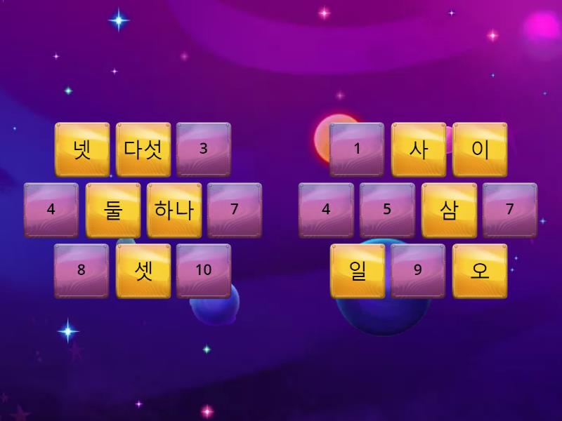 하나 - 일, 둘 - 이, 셋 - 삼, 넷 - 사, 다섯 - 오, 여섯 - 육, 일곱 - 칠, 여덟 - 팔, 아홉 - 구, 열 - 십,