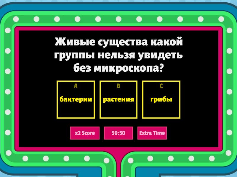 1) Живые существа какой группы нельзя увидеть без микроскопа? a) бактерии b) растения c) грибы 2) К какому царству живой природы можно отнести боровик, сыроежку и шампиньон? a) к царству растений b) к царству грибов c) к царству бактерий 3) Что не относится к неживой природе? a) зeмля b) дерево c) вода 4) В какой строке перечислены только предметы живой природы? a) человек, дуб, земля b) Солнце, вода, облако c) гриб, медведь, воробей 5) Как называются большие группы, на которые учëные разделили всё живое? a) царство b) государство c) семейство 6) Главное отличие человека от других живых существ a) одежда b) разум c) волосы 7) Участки земли, где вся природа находится под строгой охраной -... a) национальные парки b) зоопарки c) заповедники