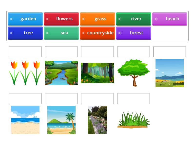 beach, countryside, flowers, forest, garden, grass, river, sea, tree,