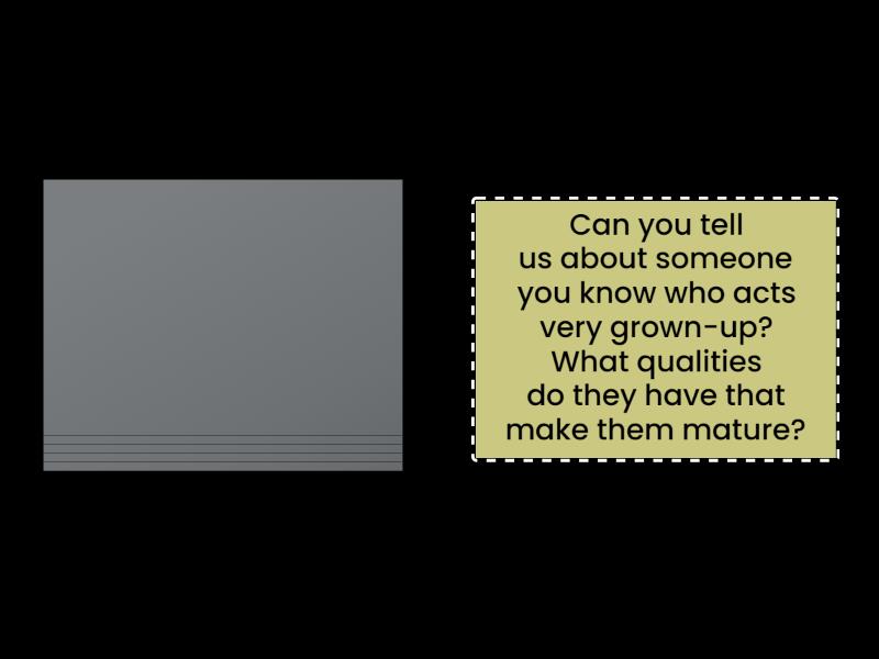 How do you imagine life will be when you are retired? What activities do you think you will enjoy?, What are the differences between being youthful and being childish? Can someone be youthful without being childish?, How can someone remain youthful in spirit even as they grow elderly?, Do you think people become more mature as they grow older, or is maturity something that can be developed at any age?, Can you tell us about someone you know who acts very grown-up? What qualities do they have that make them mature?, How have people's ideas about getting older changed in your country over time?.