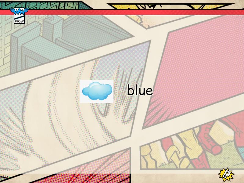 red, green, blue, white, black, dog, duck, car, cat, apple, boy, bat.