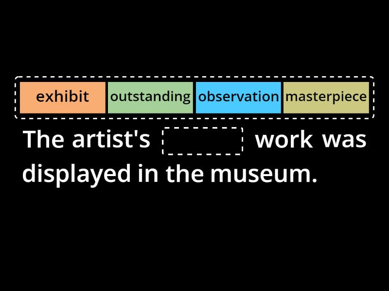 The artist's ____ work was displayed in the museum. The ____ at the gallery featured abstract paintings. This ____ tells a story through every brushstroke. The painting ____ vibrant colors and interesting textures. The painting was considered a ____ by many critics. The ____ in the portrait looked stoic and contemplative. This painting is ____ of the artist's unique style. The ____ depicted in the artwork was breathtaking. The ____ painting showcased a variety of fruits and flowers. Through careful ____, one can appreciate the details in the painting. The ____ artist had a solo exhibition at the local gallery. The portraitist ____ the subject's essence beautifully. The gallery will ____ the new collection next month Limited edition prints of the artwork are ____ for purchase.