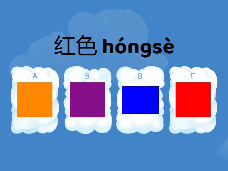 1) 红色 hóngsè a) b) c) d) 2) 橙色 chéngsè a) b) c) d) 3) 黄色 huángsè a) b) c) d) 4) 绿色 lǜsè a) b) c) d) 5) 蓝色 lánsè a) b) c) d) 6) 紫色 zǐsè a) b) c) d) 7) 白色 báisè a) b) c) d) 8) 黑色 hēisè a) b) c) d) 9) 粉红色 fěnhóngsè a) b) c) d)