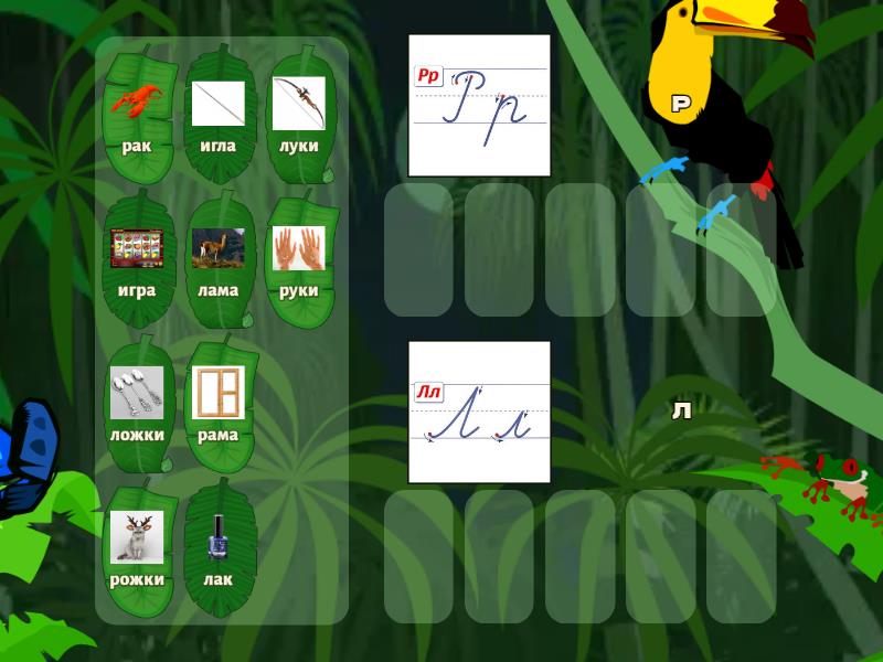 Р: игра, рожки, лак, рама, луки, Л: рак, лама, игла, руки, ложки,
