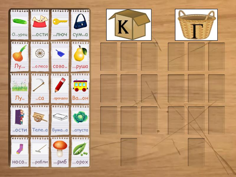 : сум..а, ..апуста, ..арандаш, носо.., ..са, сово.., ..люч, ...олесо, ...ости, Лу..., : О...урец, ...рабли, Бума...а, ...риб, Лу.., ...орох, Ва...он, Теле..а, ...руша, ..ости,