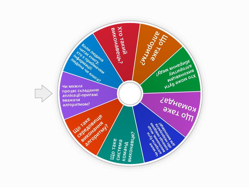 1) Коли людина читає книгу, хто є приймачем інформації: людина чи книга? 2) Хто такий виконавець? 3) Що таке алгоритм? 4) Хто може бути виконавцем алгоритму збирання меду? 5) Що таке команда? 6) Чи може алгоритм бути виконаним, якщо команда невідома або незрозуміла для виконавця? 7) Що таке система команд виконавця? 8) Що таке середовище виконання алгоритму? 9) Чи можна процес складання аплікації-оригамі вважати алгоритмом?