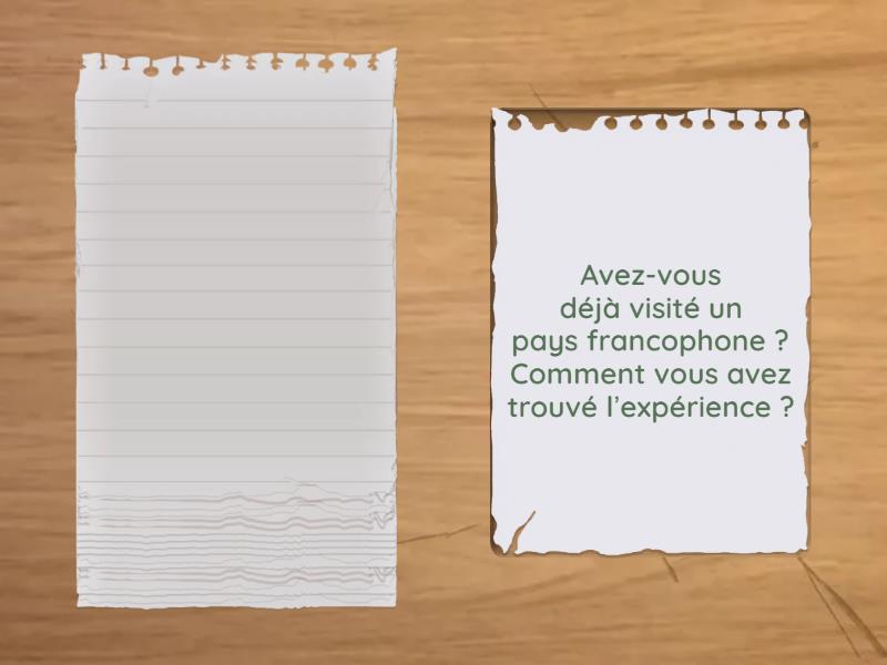 Comportez-vous / agissez-vous / pensez-vous différemment en cours de langue/français ?, Votre apprentissage d'une deuxième langue a-t-il influencé votre façon de penser, d'agir, de voir le monde ?, Qu’est-ce qui était difficile/facile/différent/surprenant pendant votre parcours d'apprentissage de français ?, Est-ce que vous avez étudié quelque chose qui vous a choqué ?, Qu'avez-vous trouvé le plus gratifiant en étudiant le français?, Quels avantages avez-vous retirés de l'apprentissage du français ?/ Qu’est-ce que l’apprentissage de français vous a apporté ?, Lorsque vous parlez en français, vous exprimez-vous différemment que lorsque vous parlez en anglais ?, Est-ce que vos études de français vous ont aidé à mieux comprendre votre langue maternelle ?, Quel thème avez-vous préféré pendant vos études de français ?, Quels conseils donneriez-vous à un/une élève qui veut étudier le français ? Qu’est-ce que vous recommanderiez ?, Quel est l'objectif de l'apprentissage d'une deuxième langue ? Quel est le vôtre ?, Est-ce que vous regardez souvent les émissions françaises, laquelle avez-vous préférée ?, Avez-vous déjà visité un pays francophone ? Comment vous avez trouvé l’expérience ?, Comment prévoyez-vous / aimeriez-vous utiliser cette langue à l'avenir ?, Est-ce que vous allez continuer à étudier le français à l’avenir ?, Lors de votre apprentissage du français, quels aspects de la langue ont été difficile à maitriser pour vous ? While studying French, what aspects of the language were difficult for you to master?, Pourquoi avez-vous décidé d’étudier le français ?, Depuis combien de temps étudiez-vous le français ?, Pensez-vous que ce soit important d’étudier une langue étrangère ? Pourquoi ?.
