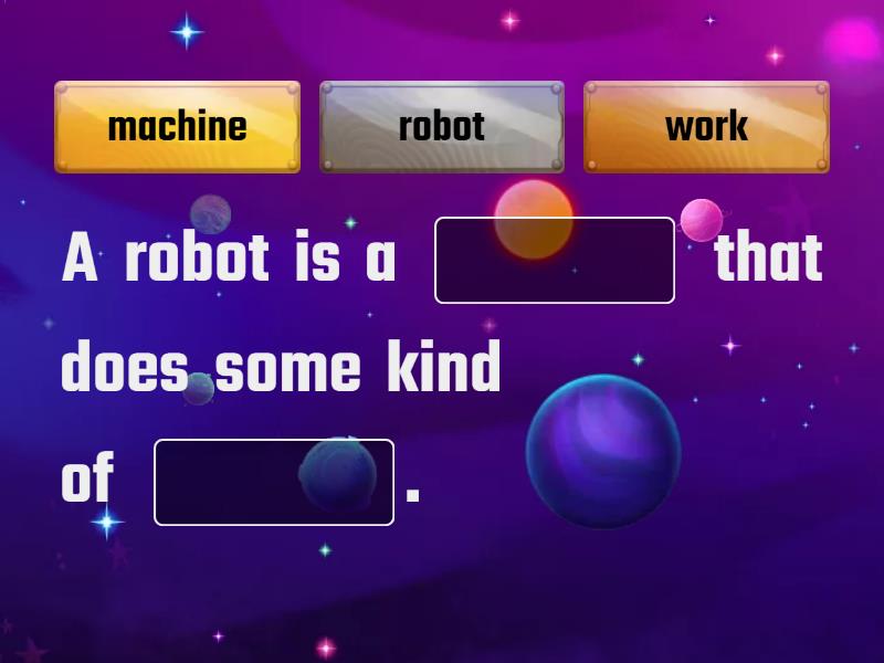A robot is a ____ that does some kind of ____. Robots are good workers. They do not get ____ or tired. And they do not need to get ____ to do their jobs. Robots can work in places that are ____ for people to work. A robot can stay in the water day after day does and does not need to ____ air. Some robots help make cars. The robots lift ____ car parts. They drill holes and use ____ that are very hot. Some schools have robot ____. Students make their own robots then they think up ways to make the best robot. The ____ gets a prize!