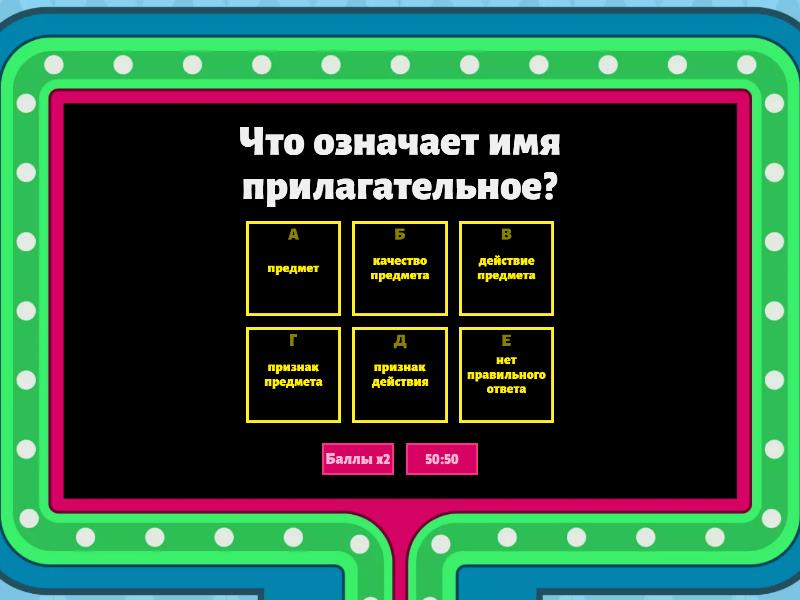 1) Что означает имя прилагательное? a) предмет b) качество предмета c) действие предмета d) признак предмета e) признак действия f) нет правильного ответа 2) На какие вопросы отвечают имена прилагательные? a) Кто? Что? b) Как? c) Сколько? d) Что делают ? e) Что будут делать? f) Какой? Какая? Какое ? Какие? 3) Выберите имя прилагательное мужского рода. a) ласковая b) интересное c) глубокий d) маленькие e) грустное f) яркая 4) Определите ряд имен прилагательных множественного числа. a) холодный, веселые b) огромная, красная c) синее, осеннее d) желтые, разноцветные e) лесная , бледное f) зеленые, пушистое 5) Отметьте в каких словосочетаниях имена прилагательные стоят в единственном числе. a) узкая тропинка b) глубокие реки c) голубые озера d) серые глаза e) тонкие стебельки f) веселые игры 6) Отметьте в каких словосочетаниях имена прилагательные стоят в множественном числе a) глубокая впадина b) белые пионы c) желтое одеяло d) маленький кот e) веселая собака f) говорящий попугай