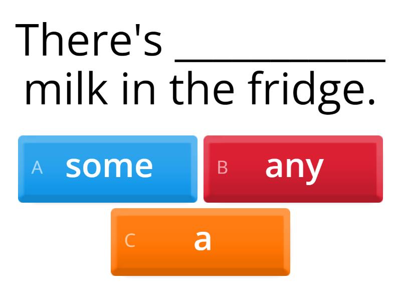 1) There's ___________ milk in the fridge. a) some b) any c) a 2) We don't need _____ bread. a) no b) any c) a 3) How _________ fruit do you eat a day? a) a lot b) many c) much 4) I drink _________ coffee. a) much b) a lot c) a lot of 5) A: How much salt do you eat? B: ________ a) a little b) a few c) much 6) A: Is there any sugar? B: No, sorry, ___________ a) there isn't none. b) there isn't any c) there isn't some 7) Tea is __________ coffee in this café. a) cheaper that b) more cheap than c) cheaper than 8) This exercise is __________ than the last one. a) more easy b) easier c) easyer 9) My English is _________ than my brother's. a) gooder b) more good c) better 10) This is ________ size that we have. a) the biggest b) the most big c) the bigger 11) It's ________ restaurant in the city. a) the worst b) the baddest c) the worse 12) What's ________ park in your town? a) the most beautiful b) most beautiful c) the more beautiful 13) _______ to buy my ticket this afternoon. a) I go b) I going c) I'm going 14) _______ to get married? a) Do they going b) They are going c) Are they going 15) I think _______ tomorrow a) it snows b) it's snowing c) it's going to snow