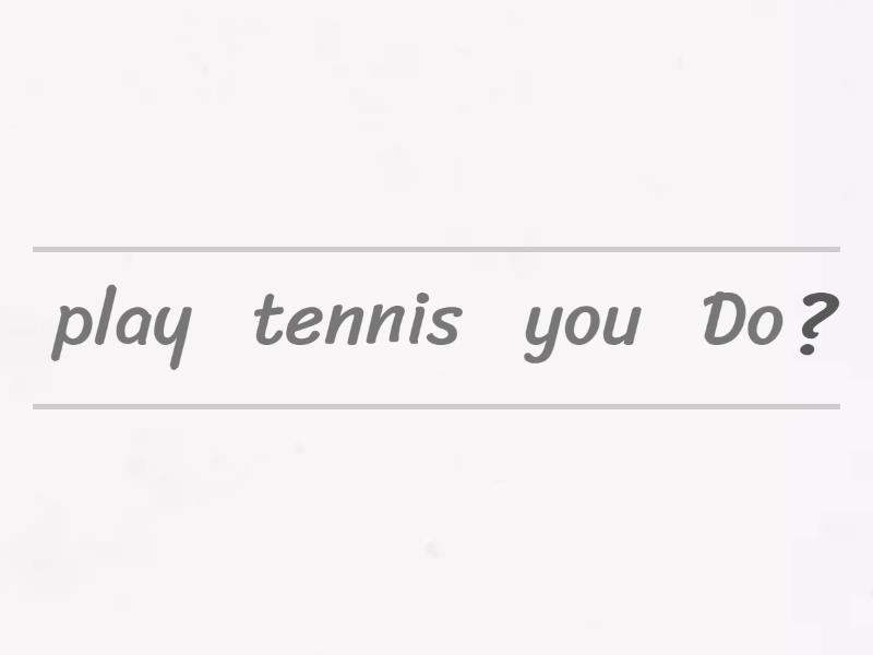 Do you play tennis?, Does your friend read books?, Does your mum cook dinner?, Dour your brother watch Tv?, Do they work in an office?, Do we go to school by bus?,