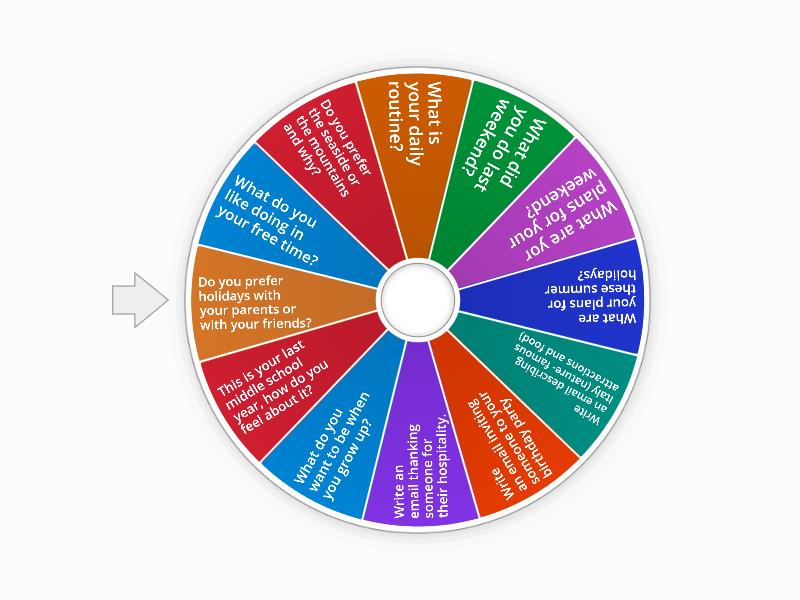 1) What do you like doing in your free time? 2) Do you prefer the seaside or the mountains and why? 3) What is your daily routine? 4) What did you do last weekend? 5) What are yor plans for your weekend? 6) What are your plans for these summer holidays? 7) Write an email describing Italy (nature- famous attractions and food) 8) Write an email inviting someone to your birthday party 9) Write an email thanking someone for their hospitality. 10) What do you want to be when you grow up? 11) This is your last middle school year, how do you feel about it? 12) Do you prefer holidays with your parents or with your friends?