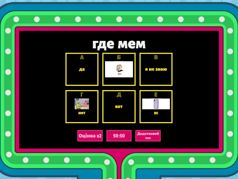 1) где мем a) да b) c) я не знаю d) нет e) кот f) хс 2) где випадает лион a) ГОВНОЕД b) c) 3) где кит * из бравл старс* a) b) c) 4) где ральний побудитель евро эвровидие 2024 a) b) c) 5) где украйинский победидитель a) b) c) d) 6) простите за суржик a) хорошо b) ИДИ В ЖОПУ c) Я НАЙДУ ТЕБЯ И СКАЖУ УЧИ ЯЗИК
