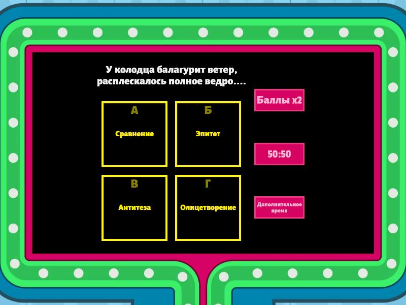 1) У колодца балагурит ветер, расплескалось полное ведро.... a) Сравнение b) Эпитет c) Антитеза d) Олицетворение 2) Есть тоска веселая в алостях зари. a) Сравнение b) Метафора c) Оксюморон d) Эпифора 3) Ликует буйный Рим. a) Метонимия b) Перифраз c) Сравнение d) Гипербола 4) Снег, словно мёд ноздреватый, лёг под прямой частокол. a) Градация b) Эпитет c) Сравнение d) Оксюморон 5) Горькой радостью озарилось лицо матери. a) Оксюморон b) Анафора c) Гипербола d) Перифраза